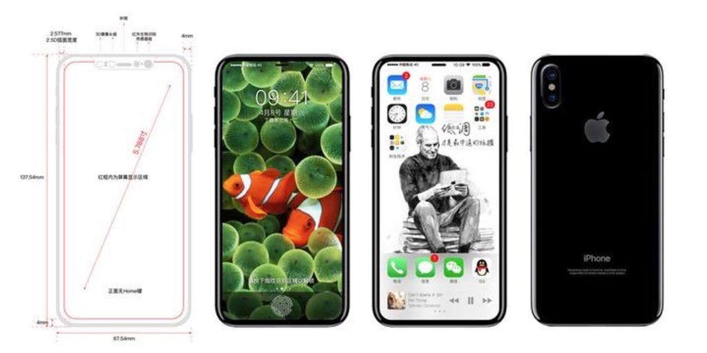 Stanno circolando in rete da questa mattina una nuova serie di immagini di iPhone 8. Queste immagini sembrerebbero essere “reali” perché basate su un dei possibili prototipi del prodotto in via di lavorazione. I disegni sono molto dettagliati e ci mostrano sia la parte anteriore del dispositivo che quella posteriore.