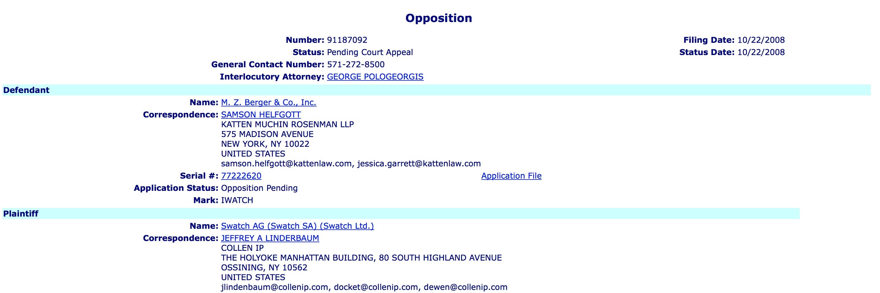 Mentre Swatch dice che combatterà i marchi, il produttore di orologi non darà specifiche su come intende farlo. Secondo il governo degli Stati Uniti, Swatch si è già mossa in passato per bloccare Apple nella registrazione del marchio iWatch: