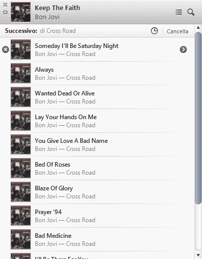 Up Next è un nuovo pannello a scomparsa che ci permette di vedere quali sono i prossimi brani in riproduzione e di mettere in coda altre canzoni o album che si desidera ascoltare in seguito.