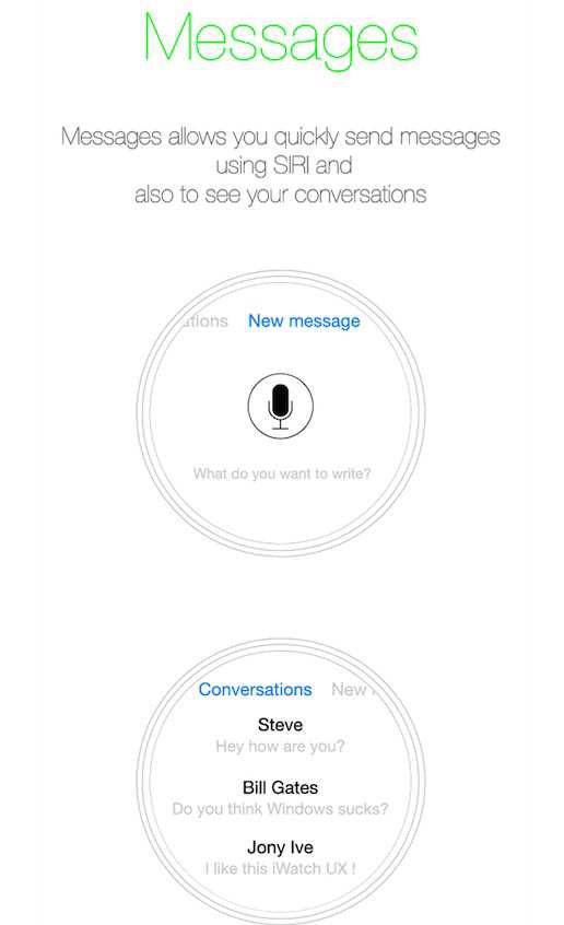 Per quanto riguarda infine la compatibilità di iWatch con iPhone, saranno presenti le app Chiamate e Messaggi, che saranno utilizzabili e controllate tramite Siri a comando vocale.