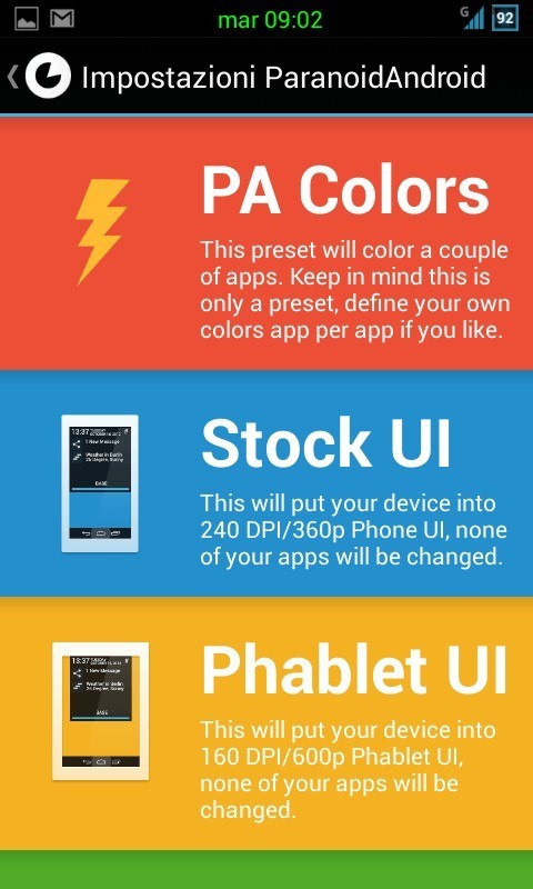 La sezione Paranoiandroid garantisce la possibilità di personalizzare a proprio gusto , qualsiasi dettaglio del sistema: