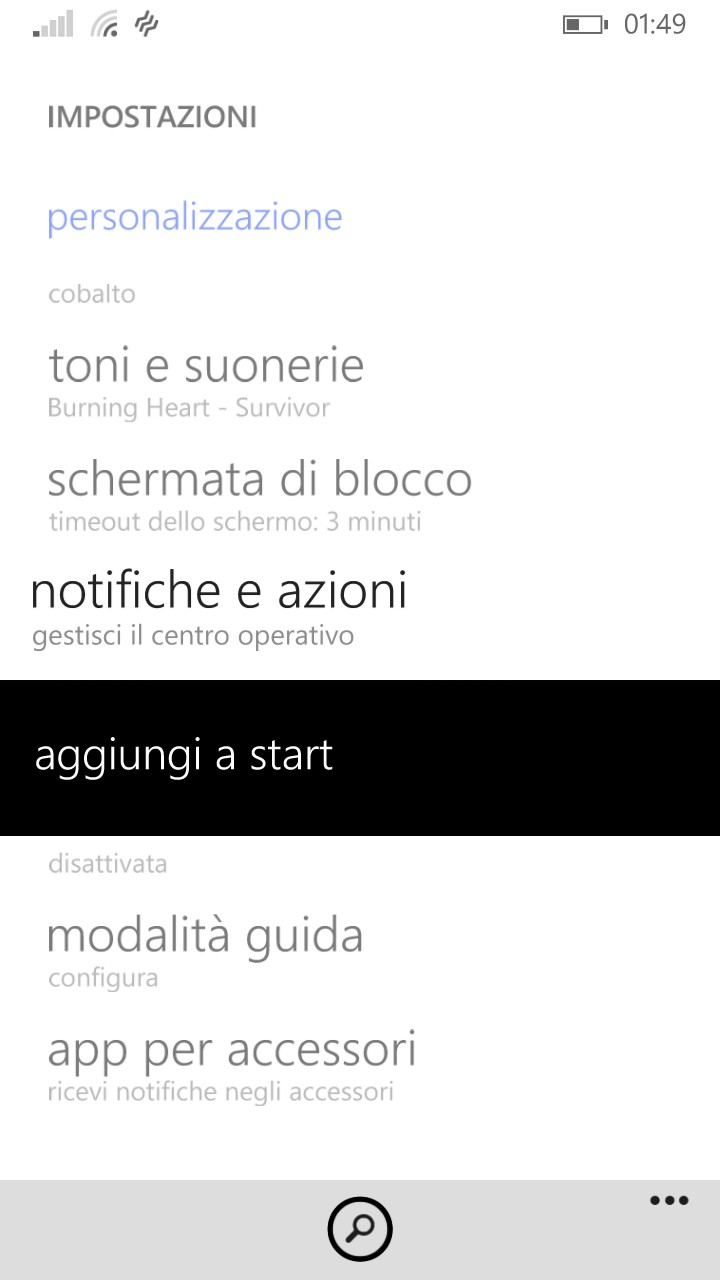 Con Windows Phone GDR2 (disponibile su Lumia 735, 830, 540, 640 e 640 XL) potete anche pinnare le impostazioni nella start, semplicemente tenendo premuta la voce che vi interessa (ad esempio Bluetooth, Rotazione schermo ecc) per poi selezionare “pin to start“.