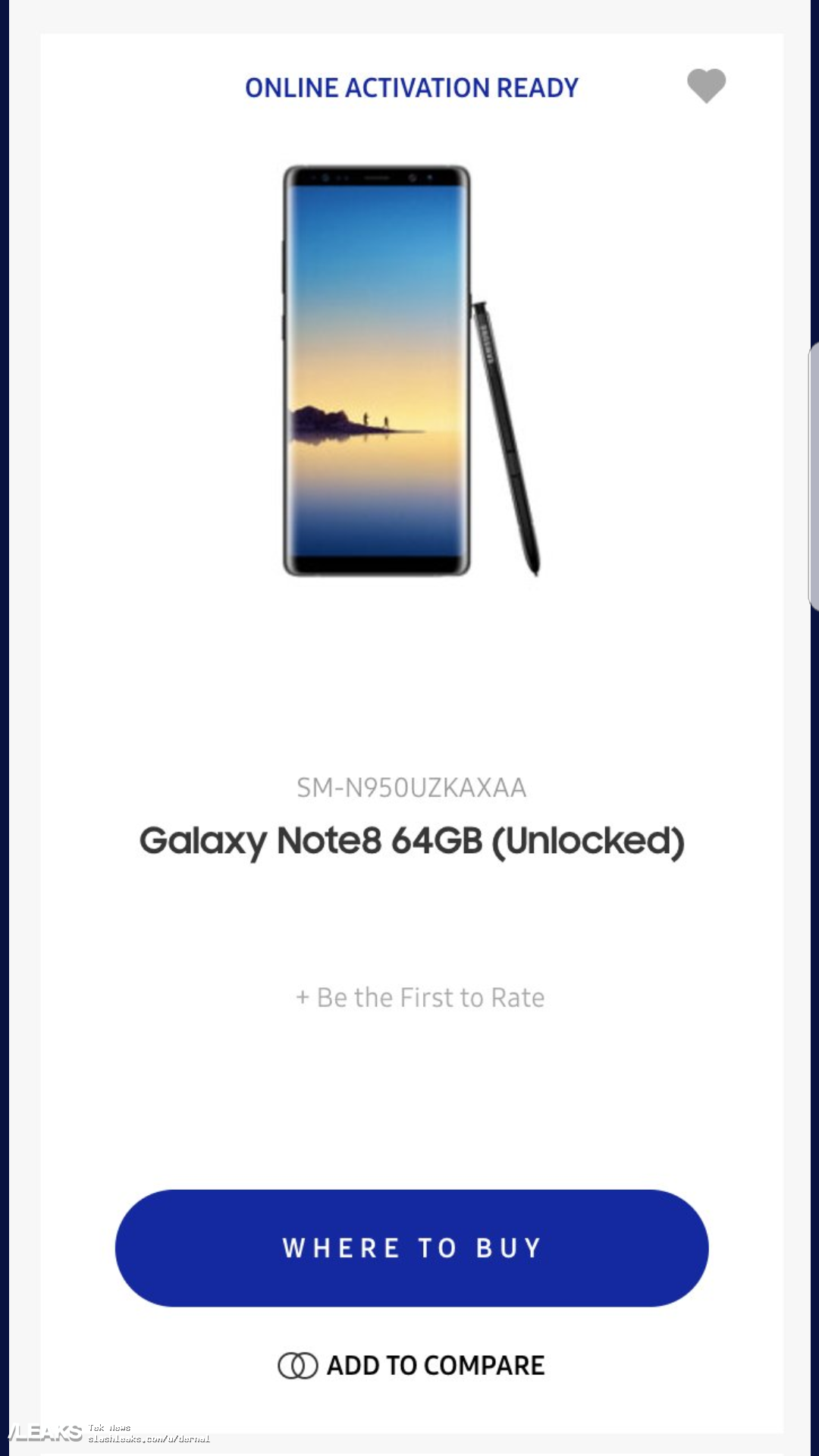 Attraverso il sempre buon informato blog Slashleaks siamo entrati in possesso di un’immagine che dovrebbe raffigurare un Samsung Galaxy Note 8 pronto per l’acquisto sul sito della casa sudcoreana. La foto, come mostrato, sembrerebbe essere stata ripresa attraverso uno screen via smartphone, di fatti nella parte destra dello schermo è evidente il pannello Edge di un prodotto. Ma sarà vero o un fake?