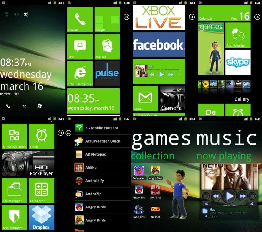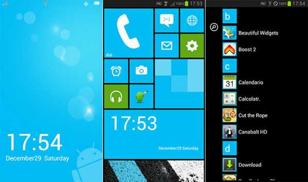 Launcher 7 e Launcher 8 sono due launcher molto simili (a tratti identici), che cercano di emulare la schermata principale degli smartphone Windows 7 e 8. Con questi launcher, il nostro telefono si avvarrà dei famosi “Tiles”, i quadrettoni colorati e ridimensionabili di ogni Windows Phone. Alcuni Tiles sono addirittura animati, come quello dei contatti. C’è qualche possibilità in più rispetto ai Windows Phone, tipo la possibilità di avvalersi di uno sfondo vero, e non di un semplice sfondo bianco o nero. I Tiles sono anche ridimensionabili, rinominabili, e supporta il cambio delle icone. Tutto questo, gratuitamente.