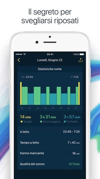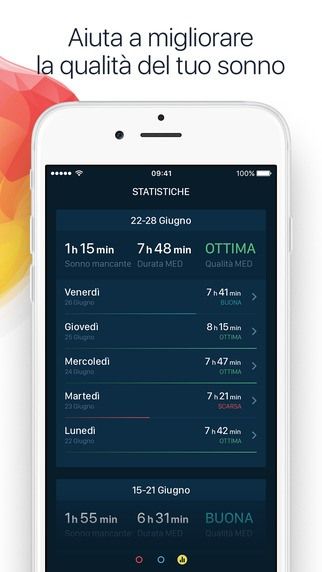Un’applicazione ricca di funzionalità, che oltre a essere una sveglia intelligente, ricopre anche il ruolo di sleep tracking, ovvero effettua un efficace monitoraggio del sonno per verificarne e attestarne la qualità e vi informa se siete in debito di riposo o se le vostre ore di sonno sono state ben spese. Grazie a una sveglia intelligente, inoltre, dire buongiorno non sarà più la stessa cosa, poiché la fase del risveglio comincerà in maniera delicata e leggera mezz’ora prima della fatidica sveglia. Corredano l’applicazione grafici e statistiche finalizzate a informare gli utenti sulla loro attività notturna.
