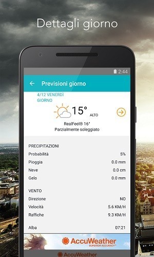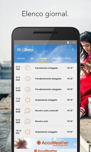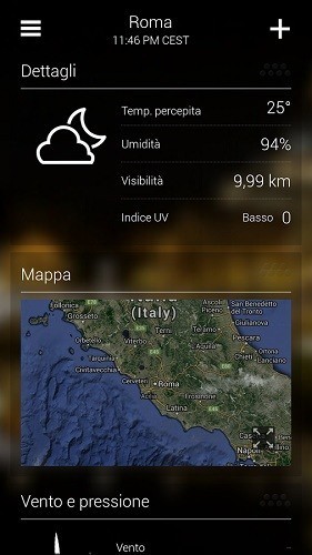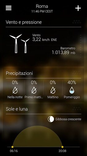 Yahoo Meteo vanta un design acclamato con belle foto che corrispondono alla vostra posizione, ora del giorno, e le condizioni meteorologiche correnti. Include informazioni meteo dettagliate a 10 giorni e 24 ore, le previsioni di temperatura, un radar interattivo, via satellite, il calore, e le mappe del vento, gli avvisi di maltempo, gli orari di alba e tramonto animate e moduli di vento e di pressione. Sono anche monitorate l’umidità dell’aria, l’indice UV, e possibilità di precipitazioni. Una delle più precise.