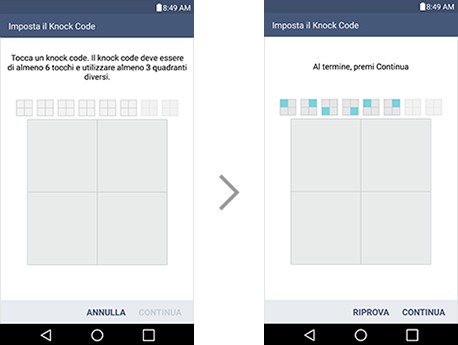 Knock Code deve essere aggiornato per offrire una migliore esperienza per l’ultimo sistema operativo. Ora è necessario disporre di almeno 6 tocchi e utilizzare 3 diversi quadranti nel tuo Knock Code.