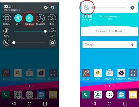 La modalità silenziosa è stata aggiunta al profilo audio. Si puòi mettere a tacere il telefono nel pannello di notifica o nel pannello del volume che mostra quando premi i tasti del volume. Si può anche mettere a tacere il telefono in Impostazioni > Suoni e notifiche.