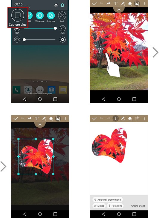 QMemo+ nel pannello di notifica è stato rinominato in Capture+. Inoltre, Slice è stato aggiunto a Capture+. Si può ritagliare i tuoi promemoria in quattro modi diversi.