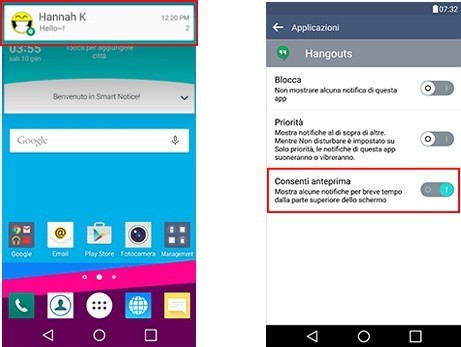 Consenti anteprima è stato aggiunto a Impostazioni in modo che ora si possa vedere le notifiche nella parte superiore dello schermo ed evitare che esse blocchino lo schermo.