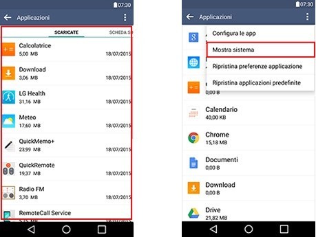 Si può includere o escludere le app di sistema attraverso il menù nell’angolo in alto a destra di questa schermata.