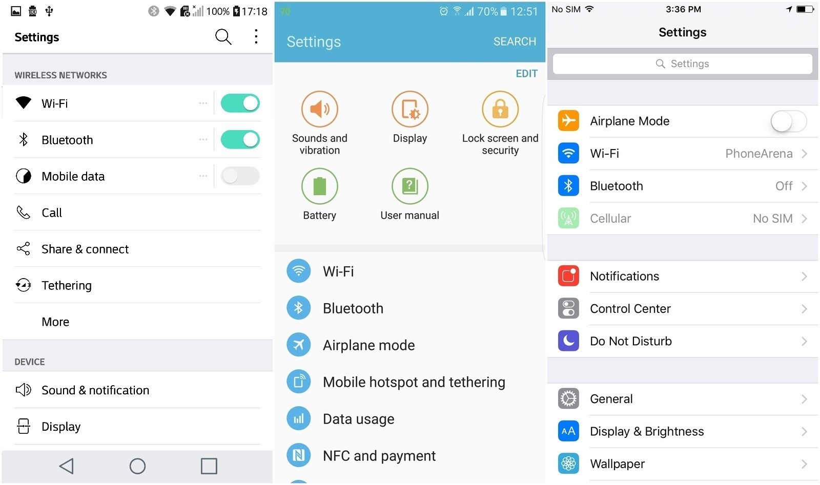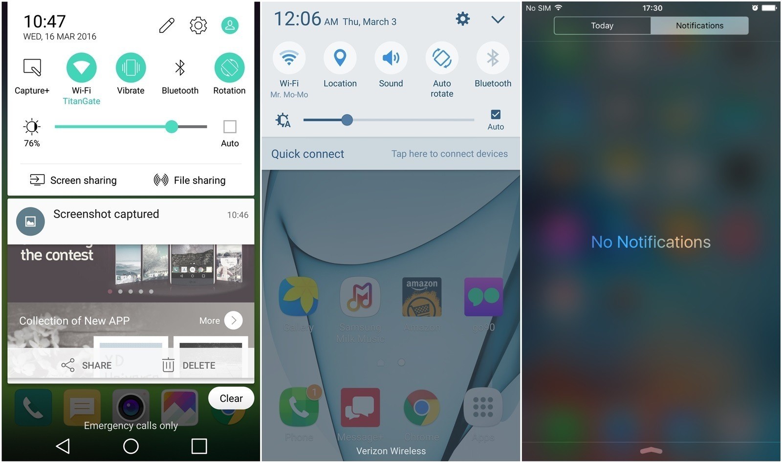 Tutte e tre sono interfacce interessanti e per vedere le differenze utilizzeremo una galleria immagini dettagliata. Ecco le UI a confronto di LG G5, Galaxy S7 ed iPhone 6: