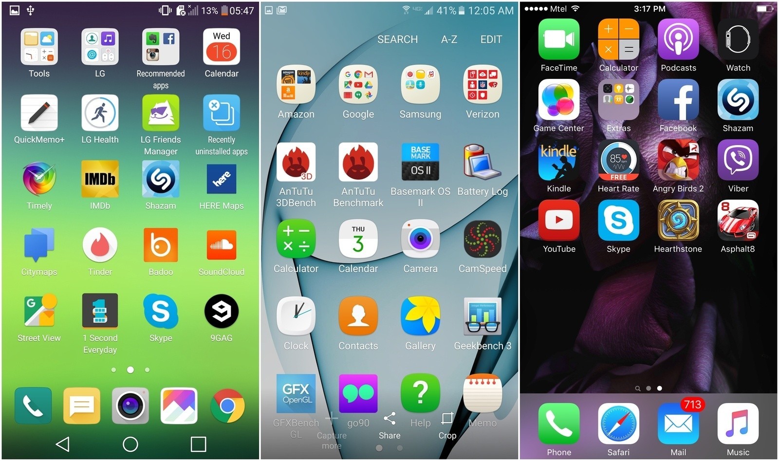 Non potevamo che vedere la comparazione dei tre smartphone top di gamma: LG G5, Samsung Galaxy S7 e iPhone 6. Possono non avere un design spettacolare, ma ciò che più sorprende è sicuramente la fluidità hardware rapportata ad un’interfaccia intelligente. Ognuno di questi presenta delle differenze di interfaccia infatti troviamo UX per LG, TouchWiz per Samsung e iOS 9 per Apple.