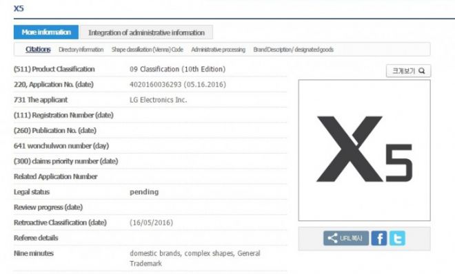 Da alcune ore è arrivata dalla Corea del Sud la notizia che LG ha depositato il nuovo marchio X5 associandolo ad un logo che da una parte indica un dispositivo appartenente alla neonata serie X e dall’altra al top di gamma G5.