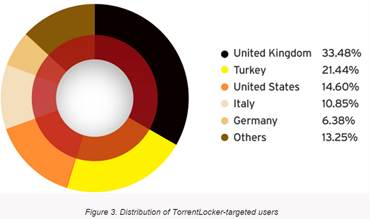 La maggior parte delle aziende colpite da questa ondata crypto-ransomware appartiene al settore Sanità e l’Italia risulta essere la quarta nazione per numero di comunicazioni ricevute che contenevano TorrentLocker.