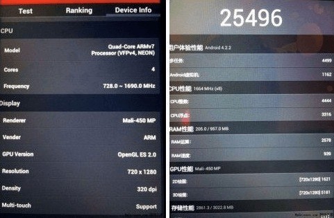Il MediaTek MT6592 che sarà basato su otto core Cortex A7 e realizzato con processo produttivo a 28nm sembra ormai in dirittura d’arrivo ed oggi arrivano alcuni nuovi screenshot presi da AnTuTu benchmark ed effettuati su un prototipo con velocità di clock bloccata a 1.7GHz riportano un punteggio di 25.496, buono quindi ma lontano ancora dai top di gamma Qualcomm Snapdragon 600 e 800, ma da quanto trapela, la velocità effettiva del processore sarà di 2GHz che dovrebbe consentire un punteggio con il medesimo benchmark di circa 30000 punti, che lo porterebbe ad essere uno dei più veloci processori per il mobile al mondo!