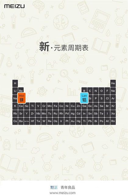 L’immagine è questa, e come potete vedere viene mostrata una tavola periodica, evidenziando due elementi, il magnesio e l’alluminio. Questo ci fa pensare che Meizu abbia usato questi due elementi per realizzare la scocca in metallo, realizzando così un prodotto davvero molto interessante. Anche dal punto di vista tecnico ci saranno alcuni piccoli cambiamenti, ovvero :