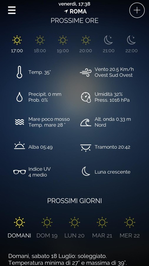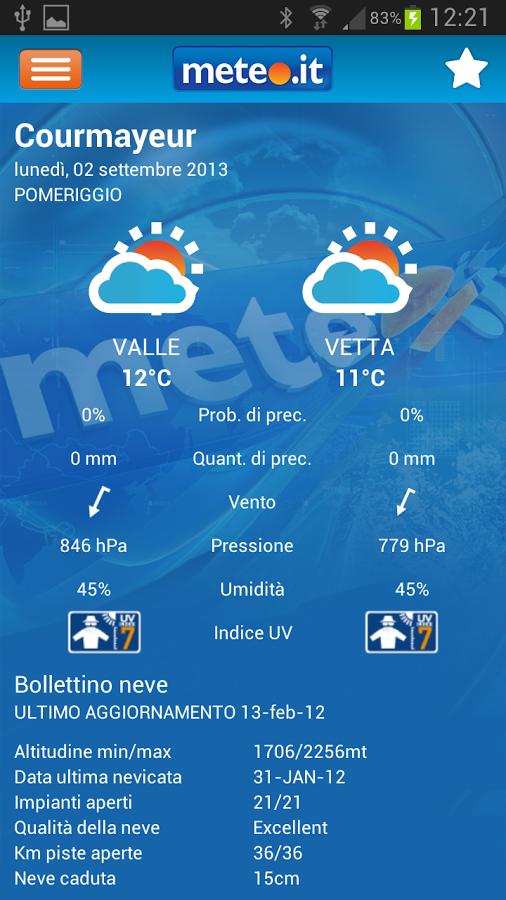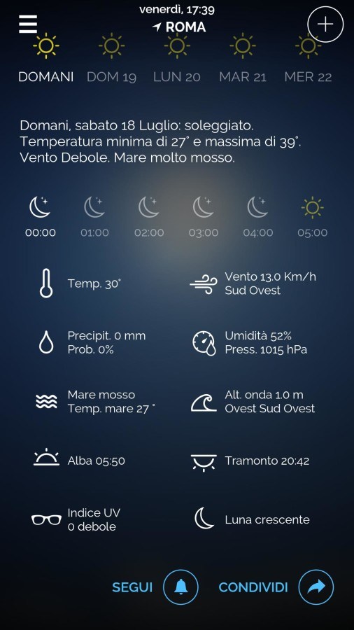 Finalmente i programmatori scelti da Mediaset, hanno fatto un ottimo lavoro: material design, animazioni più belle e d’effetto, possibilità di personalizzazione delle pagine principali da visualizzare, e una fluidità degna di una app così famosa ed importante, oltre al miglioramento del motore di previsioni meteo. Vi mostriamo in anteprima, alcuni screenshot della nuova versione di Meteo.it: