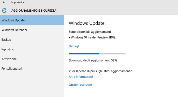 Ricordiamo ancora una volta che Windows 10 build 11102 è destinata agli iscritti al programma Insider di Microsoft e non verrà rilasciata per chi dispone della versione stable del sistema operativo Microsoft rilasciata a luglio 2015. Tutti gli Insider che invece hanno attivato il canale Fast Ring per il rilascio immediato delle nuove release di Windows 10, potranno scaricare l’update direttamente seguendo il classico percorso: Impostazioni > Aggiornamento e Sicurezza > Windows Update.