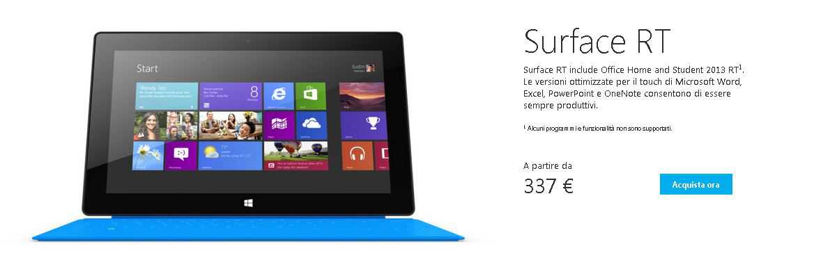 Il taglio di prezzo del Microsoft Surface RT arriva anche in Italia, e da oggi sarà disponibile alla concorrenziale cifra di 337 Euro.