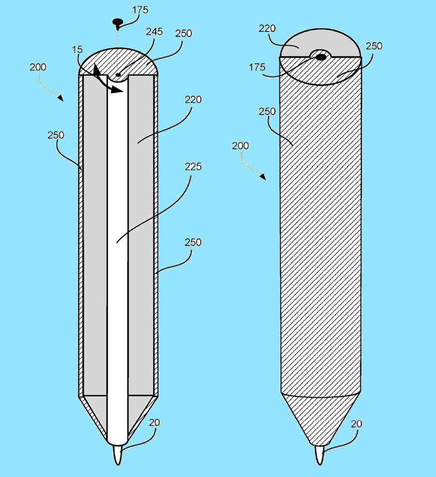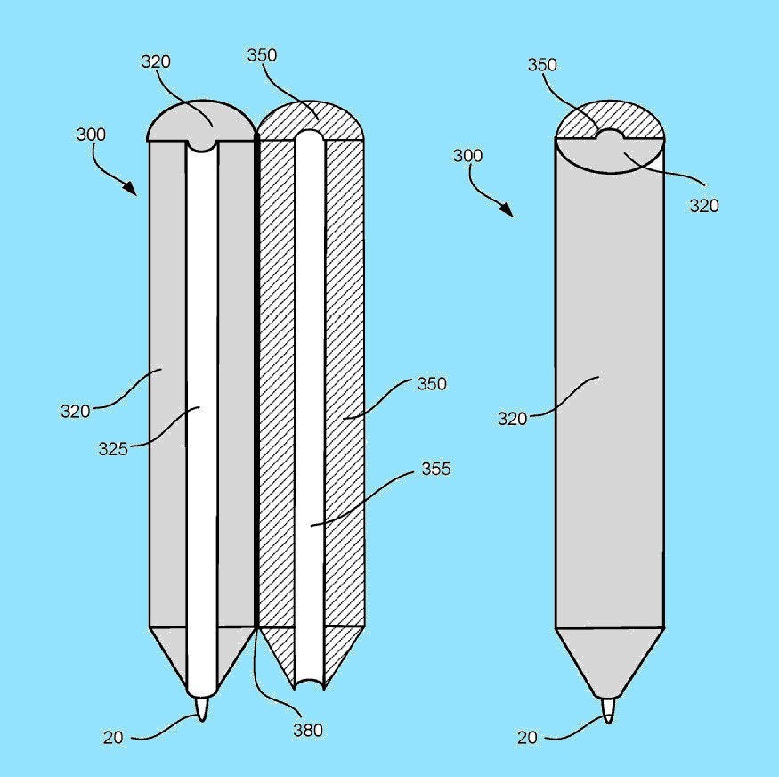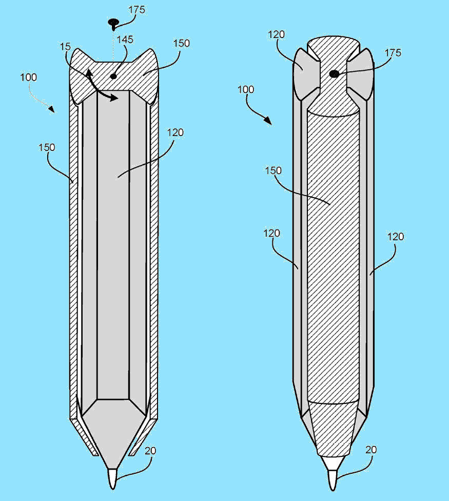 Ora emergono dalla rete nuove immagini di un brevetto Microsoft per la produzione di una nuova stilo che possa mantenere le caratteristiche d’uso tipiche della Surface Pen attuale con la possibilità di inserimento direttamente nel corpo del tablet.