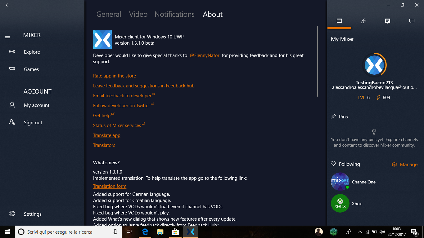 Fortunatamente uno sviluppatore indipendente ha deciso di ovviare a questa mancanza producendo direttamente un’app Mixer non ufficiale che è da poco stata pubblicata nel Microsoft Store in versione beta.
