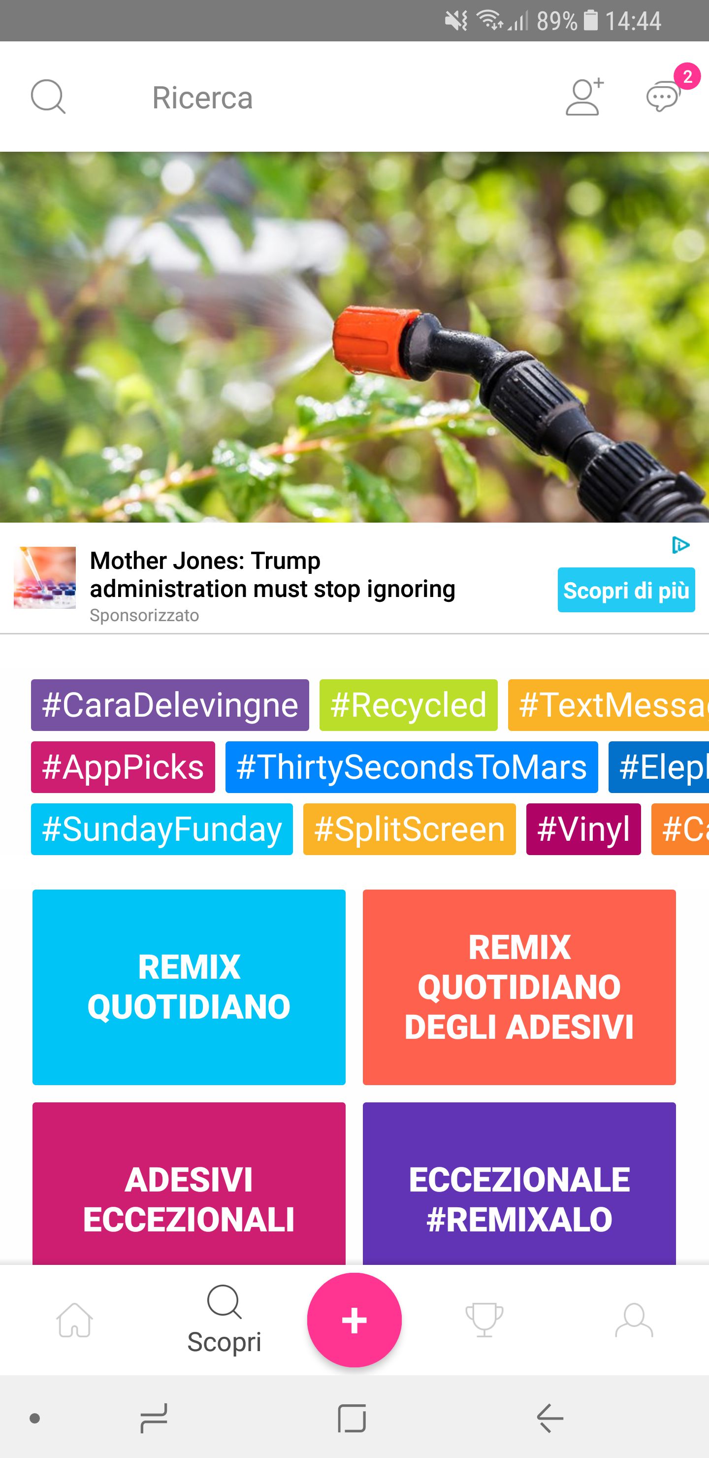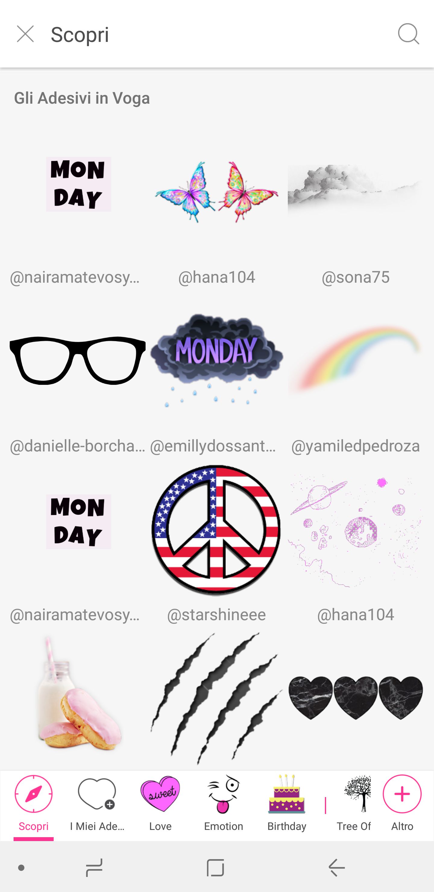 Una volta effettuata anche questa modifica rechiamoci all’interno del tab “adesivi“, qui selezioniamo un adesivo di nostro gradimento ed inseriamolo all’interno della foto modificata: