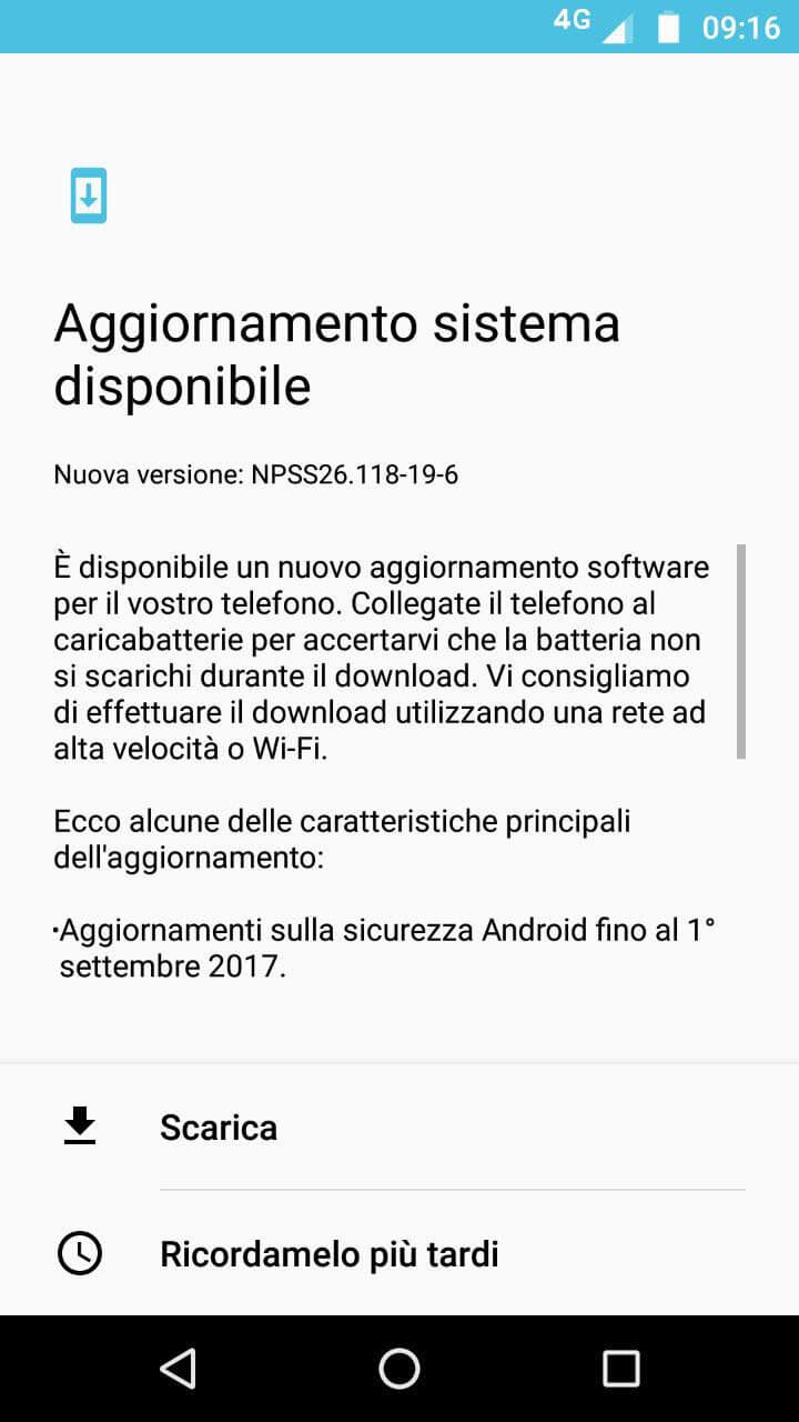 Motorola e Honor hanno iniziato il rilascio di un nuovo aggiornamento per Moto Z2 Play e Honor 6X, che include le patch di sicurezza di settembre. Per Moto Z2 Play l’update è già disponibile via OTA in Italia per la versione single SIM e pesa circa 74MB. Non sono stati apportati altri miglioramenti ed il sistema operativo in esecuzione rimane Android 7.1.1 Nougat, mentre la build si aggiorna alla versione NPSS26.118-19-6.