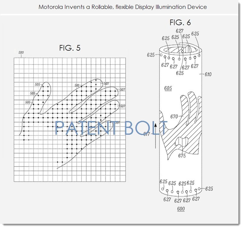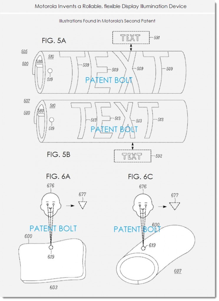 Come potete vedere dall’immagine di brevetto, quello che ha depositato Motorola mostra un display totalmente arrotolabile.