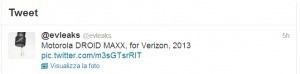 Per scoprire quale sarà l’aspetto del nuovo dispositivo Motorola DROID MAXX non ci resta che aspettare la presentazione ufficiale, che si presume sia fissata per l’11 Luglio, dove oltre a questo device probabilmente prenderanno la rampa di lancio anche altri terminali della nuova gamma. Siamo tutti in attesa… Presto la nostra pazienza sarà premiata…. Sperando di essere soddisfatti dalla nuova famiglia Motorola….