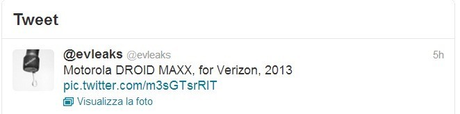Dopo che sono stati svelati i nomi dei nuovi device Motorola della gamma DROID, per i quali vi rimando all’articolo in questione dal seguente link: https://www.newsdigitali.com/nuova-gamma-motorola-droid/ ,una nuova immagina è stata twittata da Evleaks, che raffigurerebbe il nuovo Motorola DROID MAXX (XT1080M), uno dei quattro device della nuova gamma. Dovrebbe essere il successore del RAZR HD, con una batteria quindi altrettanto potente.