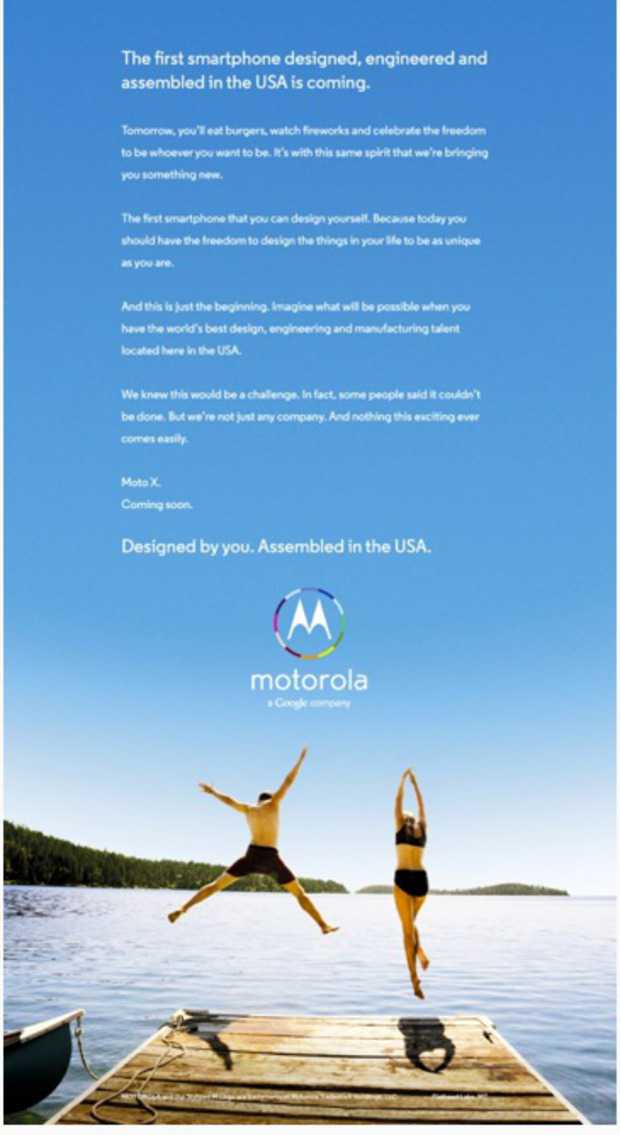 Da poche ore infatti è stato rilasciata una nuova pagina pubblicitaria in tutti più importanti quotidiani Americani quali USA Today, The New York Times, The Wall Street Journal e altri nel quali viene dato grandi risalto al fatto che il device sarà realizzato completamente negli USA e che questo sarà “il primo smartphone il cui design verrà realizzati da voi stessi”.