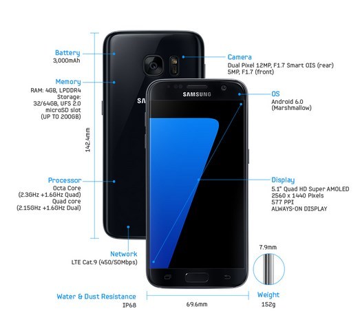 Le novità più sostanziali che si trovano sul nuovo modello della Samsung,il Galaxy S7 Edge, è uno schermo stellare sempre più integrato al corpo del dispositivo, che lo rende uno dei più compatti smartphone da 5,5″ . Ci sono due principali tecnologie di schermo attualmente in uso nei telefoni e tablet: LCD e AMOLED. Il primo di solito presenta una sorgente luminosa e cristalli liquidi, mentre il secondo è basato su diodi organici emettitori di luce. variazioni LCD più recenti, come IPS-LCD e Super-LCD consentono una riproduzione dei colori molto accurata e angoli di visualizzazione molto ampi, in cui si osserva alcuna significativa perdita di qualità dell’immagine. schermi AMOLED attuali differiscono in modo tale che possano esporre molto più saturi i colori (a volte troppo) e livelli incredibile ad alto contrasto, che è dovuto al colore completamente nero nel display AMOLED. Anche la forma del dispositivo è variata, con le parti posteriori coniche per una presa più comoda, e le telecamere che sono molto più a filo con la parte posteriore di quelle che abbiamo visto sul Galaxy S6.