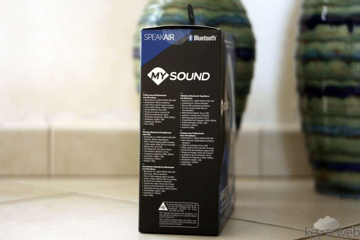 Nella confezione di vendita di queste MySound Speak Air non troveremo molto, ma quello che abbiamo è sicuramente essenziale. Infatti, oltre ad un piccolo manuale d’istruzioni, troviamo soltanto un cavo AUX da 3.5 mm per collegare gli auricolari in maniera analogica, un cavo USB to MicroUSB per caricare le cuffie, le quali sono messe in bella mostra nel box.