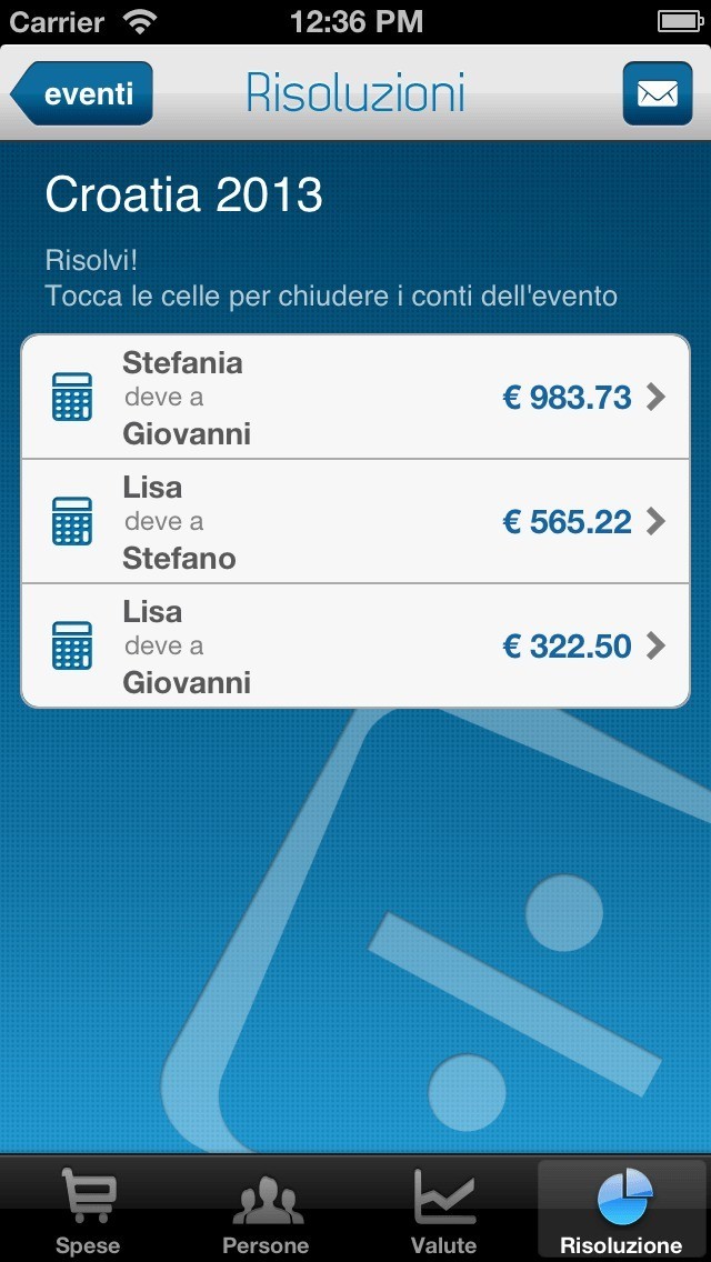 Pay&Share 3.0 è l’alternativa più efficace alla tradizionale cassa comune! In tutte le situazioni in cui ci sono condivisioni di spese, come nel caso di vacanze di gruppo, convivenze, feste o cene in compagnia, Pay&Share gestisce i conti per tutti, semplificando la vita ed evitando possibili incomprensioni fra amici. Ognuno saprà in tempo reale a quanto ammonta il suo debito e a quale componente del gruppo dovrà restituire i soldi.