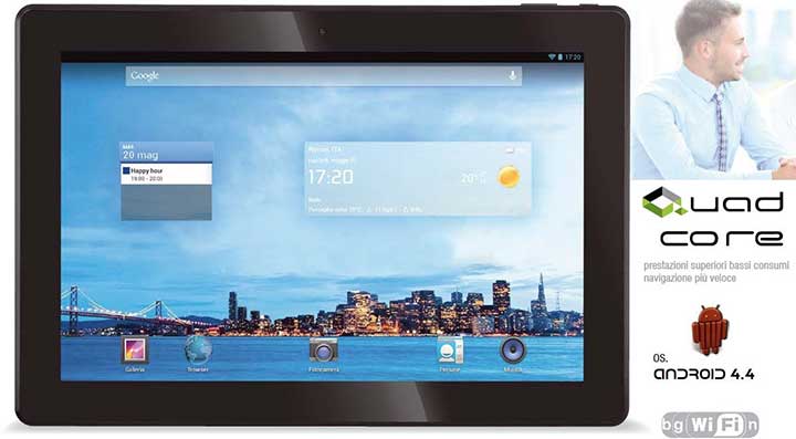 Questo mega tablet può contare sulle garanzie di efficienza offerte dal sistema operativo Android 4.4 KitKat, ovvero l’ultima evoluzione del sistema operativo mobile di Google. Il nome KitKat, per chi non lo sapesse, riprende la partnership tra il gruppo di Mountain View e la multinazionale svizzera Nestlé, con il suo mitico snack cioccolatoso.