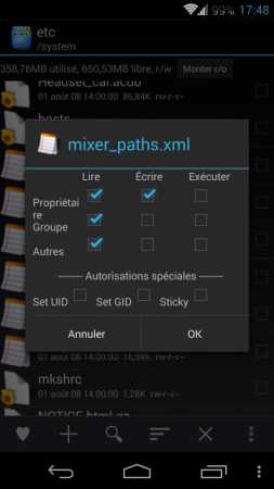 Recandovi sul sito vi basterà sostituire il file che avete scaricato e rinominarlo mixer_paths.xml, e collocarlo nella cartella system/ecc e impostare i permessi corretti nel file mixer_paths.xml, seguendo l’immagine qui sotto: