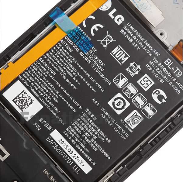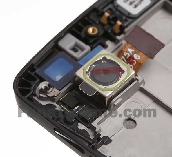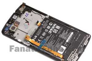 Le mmagini in una risoluzione di alta qualità, ci permettono di sbirciare dentro Nexus 5 per trovare una batteria 2300mAh (non rimovibile), la fotocamera da 8 megapixel con stabilizzazione ottica, ed un ottimo display da 4,95 pollici con 1080 x 1920 pixel. A. Tutti i circuiti di minori ed i connettori sono chiaramente visibili.