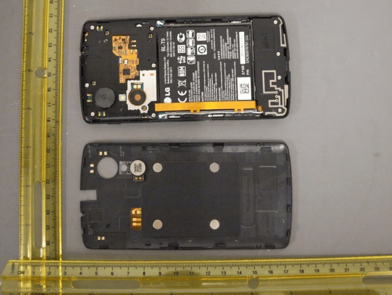 Partendo dal retro, notiamo come sia identico a quello in possesso del famoso dipendente Google di cui vi abbiamo parlato, con la fotocamera di generose dimensioni posta in posizione decentrata e dove si nota l’etichetta che conferma che il Nexus 5 è proprio un LG D820.
