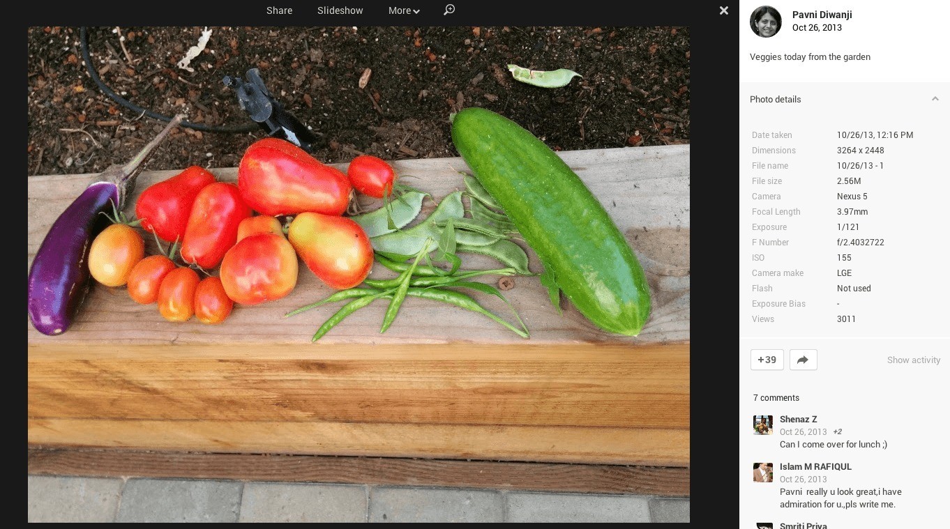 I dati EXIF delle foto riportano come dispositivo proprio il Nexus 5 e alla voce “Camera Make” compare il marchio LGE. Anche la risoluzione sarebbe confermata dallo scatto: i dati dei suddetti scatti riportano una risoluzione pari a 3264×2448, che corrisponderebbero a foto realizzate da un sensore a 8 Mpx, anche se in formato 4:3.