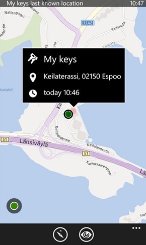 Grazie al collegamento Bluetooth 4.0 LE di cui sono dotati, i Treasure Tags potranno essere collegati al proprio Nokia Lumia e nel caso ci allontani troppo dalla clip lo smartphone lo segnalerà attraverso un avviso sonoro, ma non solo, infatti potrebbe accadere di non riuscire a trovare le chiavi od il portafoglio, ma in questo caso sarà sufficiente attivare l’apposita applicazione di ricerca installata sul Nokia Lumia e la clip a cui i nostri oggetti sono collegati inizierà ad emettere un avviso sonoro per facilitarne la ricerca e nel caso neanche questa dia i risultati sperati, sarà possibile utilizzare la mappa satellitare fornita dal servizio Nokia HERE direttamente dal proprio Lumia per poterlo ritrovare immediatamente.