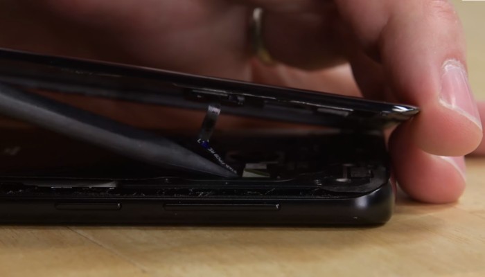 Il dispositivo è realizzato interamente in vetro, di fatti riuscire ad aprire il prodotto senza fare danni è molto complicato. Samsung ha applicato una colla monto resistente per riuscire a tenere la scocca ben salda e prima di rimuovere il pannello posteriore è necessario riscaldare tutta la superficie.