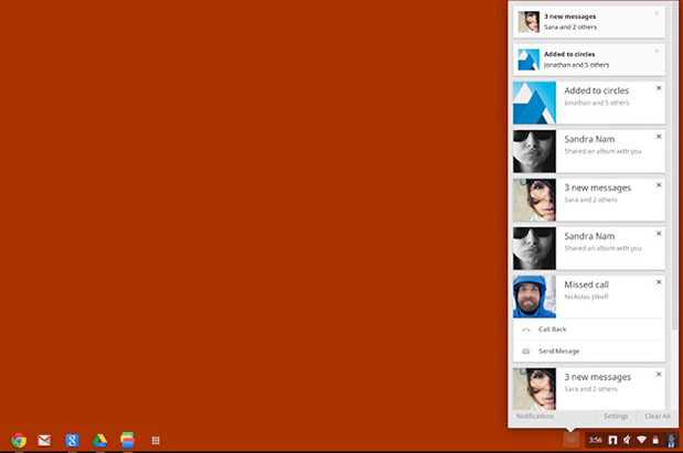 Nello specifico, dalla barra dei menu vediamo aprirsi un pop-up che raduna una sfilza di avvisi relativi a nuovi messaggi, chiamate perse e notifiche provenienti da Google+.