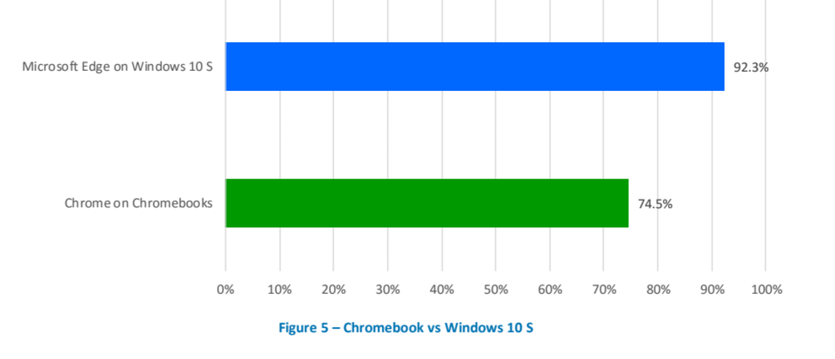 Secondo il report il Browser Microsoft è stato testato sia su piattaforma Windows 10 classica che su Windows 10 S e non ha riportato differenze sostanziali sui dati riscontrati.