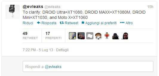 Sono stati finalmente svelati i nomi dei quattro terminali che andranno a formare la nuova gamma Motorola Droid. I terminali in questione hanno ormai ricevuto quasi tutti la certificazione dalla FCC e si tratta solo di aspettare l’ufficializzazione da parte della casa alata che i rumor danno per già fissata all’11 Luglio.
