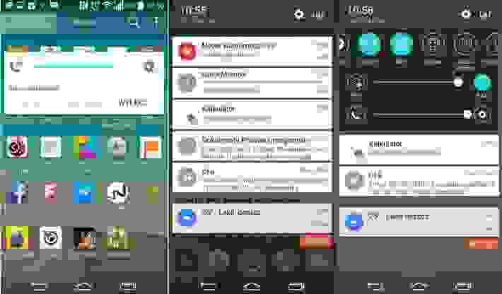 Le modifiche più evidenti su Lollipop, in questa immagine, sono le notifiche, che sono chiaramente in stile card-based Android 5.0. Anche la parte di interfaccia mostrata sembra avere le animazioni di Lollipop. Una grande cosa che manca, però, sono i pulsanti di navigazione in stile Android 5.0. Attualmente non è noto se LG prevede di mantenere i suoi pulsanti di navigazione attuali o se farà la transizione ai tasti Playstation, previsti dal nuovo sistema operativo Android.