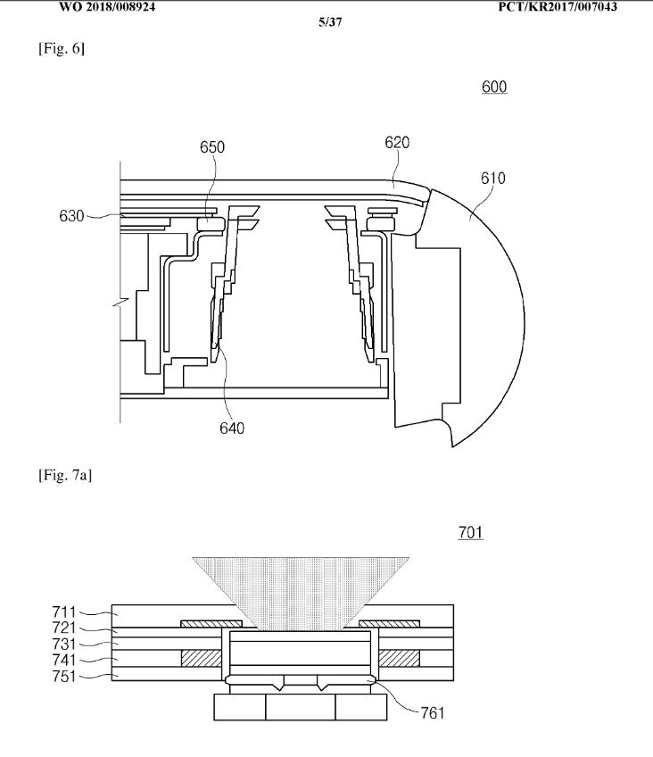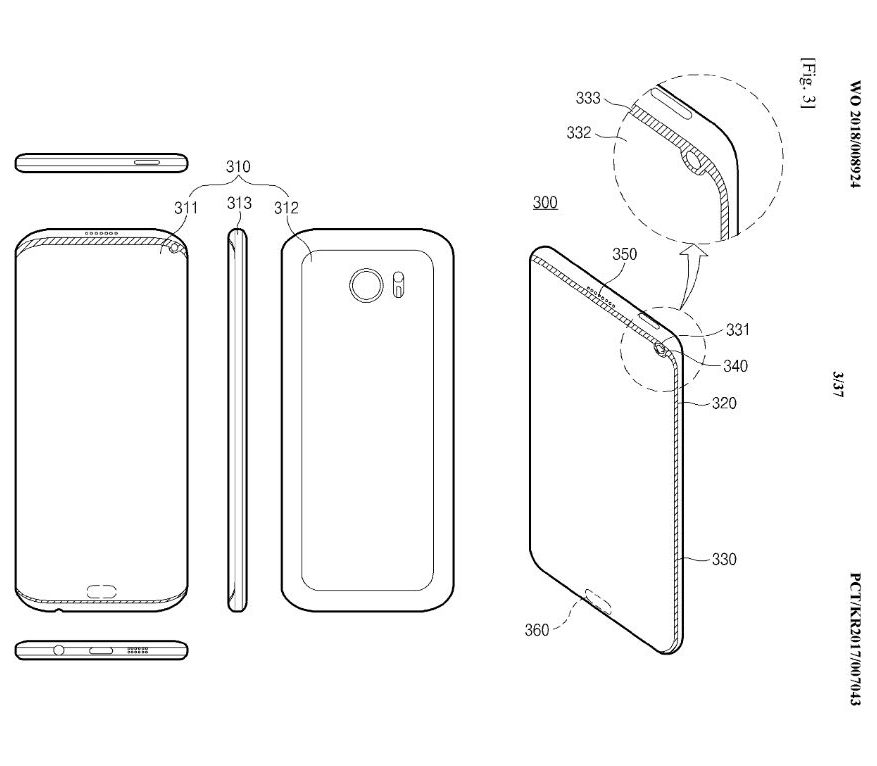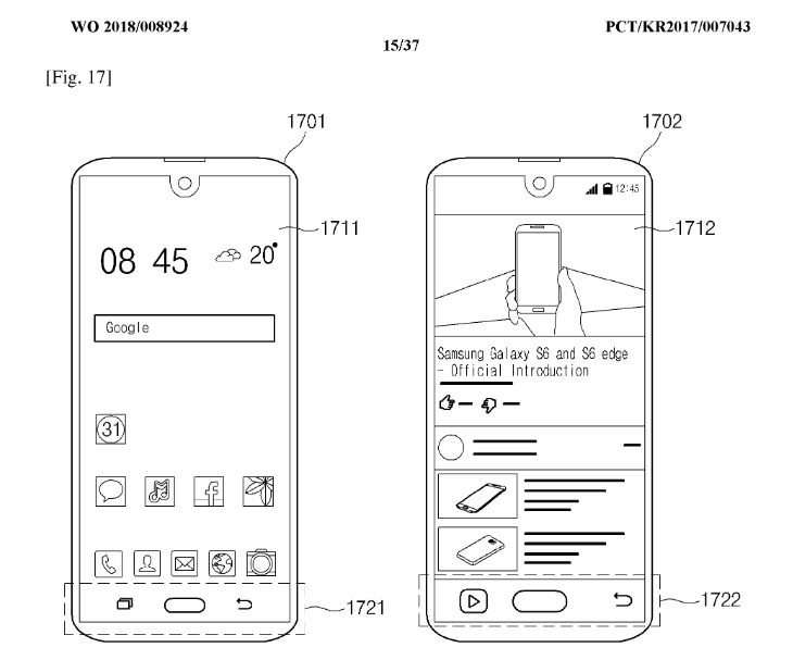 Samsung è costantemente al lavoro per riuscire a portare sul mercato in futuro nuovi smartphone dotati di schermo sempre più grandi ma allo stesso tempo cornici ancora più ridotte. Anche se di mezzo ora ci sono i Galaxy S9 praticamente di prossima uscita la compagnia sudcoreana sembrerebbe aver depositato lo scorso 3 luglio 2017 nuovi brevetti schermatici che vanno ad identificare uno smartphone privo di cornici e con varie possibili soluzioni per l’implementazione dei vari sensori utili al funzionamento. Che possa trattarsi di un idea per il possibile sviluppo di Galaxy Note 9 o magari di un device totalmente nuovo?