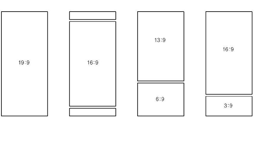 Nella prima immagine possiamo vedere uno smartphone che va a proporre nella parte superiore dello schermo, giusto al centro, una specie di isola in stile Essential Phone. Qui viene posizionata la camera frontale che sarà ovviamente utilizzata per le videochiamate e lo scatto di foto. In basso invece il lettore di impronte ed i tasti funzione sono immaginati a schermo.