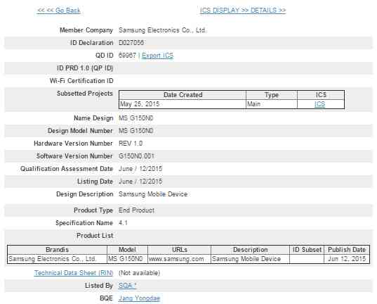 Un nuovo telefono Samsung con il numero di modello SM-G150N ha iniziato a mostrarsi in rete sia nel database IMEI sia in ambito di certificazione Bluetooth.