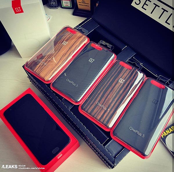 L’interno rigorosamente a tinte rosse ospita per l’appunto OnePlus 5, la cui facciata principale è ancora nella colorazione nera. Il design dello smartphone è identico al render di Evan Blass, ed una conferma ulteriore l’abbiamo anche per ciò che riguarda l’immagine posteriore, con la doppia fotocamera collocata nella parte alta e le antenne a scandire le porzioni superiori ed inferiori del dispositivo. L’immagine è infine completata dalle cover ufficiali, le stesse disponibili per OnePlus 3/3T: SandStone Black, Black Apricot, Rosewood e Karbon. Insomma, tante conferme in attesa dell’ora <<X>>, programmata oggi alle 18:00 italiane con l’evento di lancio di OnePlus 5.